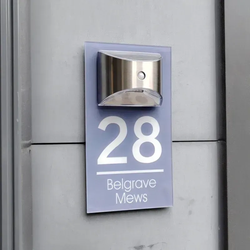 Hergestellt aus robustem 5 mm dickem matten Acryl, erzeugt das schlanke Design einen fesselnden Schwebeeffekt mit versteckten Halterungsbefestigungen. Diese Tafel hebt nicht nur die Außenseite Ihres Hauses hervor, sondern dient auch als personalisierter Leuchtturm.